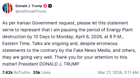 νŠΈλŸΌν”„μ˜ μ΄λž€ λ°œμ „μ†Œ 곡격 유예 흐름을 μ •λ¦¬ν•˜λ©΄ μ΄λž˜μš”.